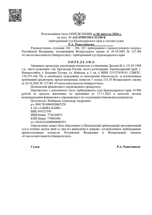для разбора вашей ситуации и разъяснения возможных вариантов процедуры